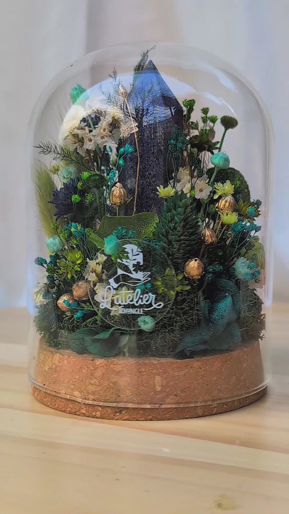 Dôme de fleurs séchées avec cristal